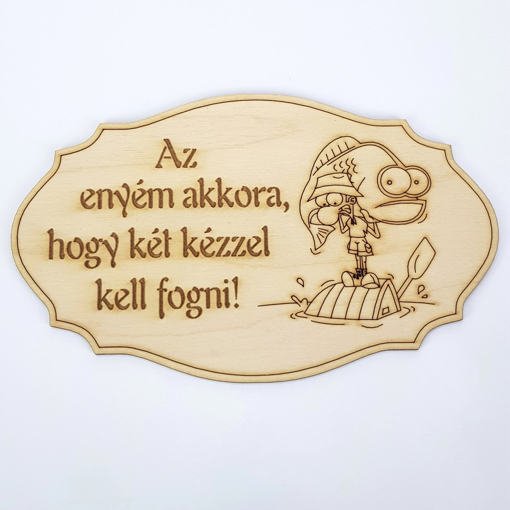 Natúr fa - Feliratos horgász tábla "Az enyém akkora,.." 20cm*12,5cm – feliratként és tábladíszként
