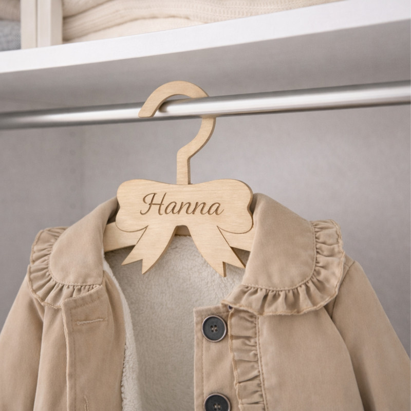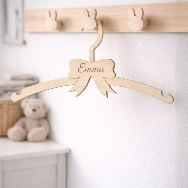 Natúr fa - Gyerek vállfa egyedi név gravírozással 13x30cm – festéshez, dekorációhoz