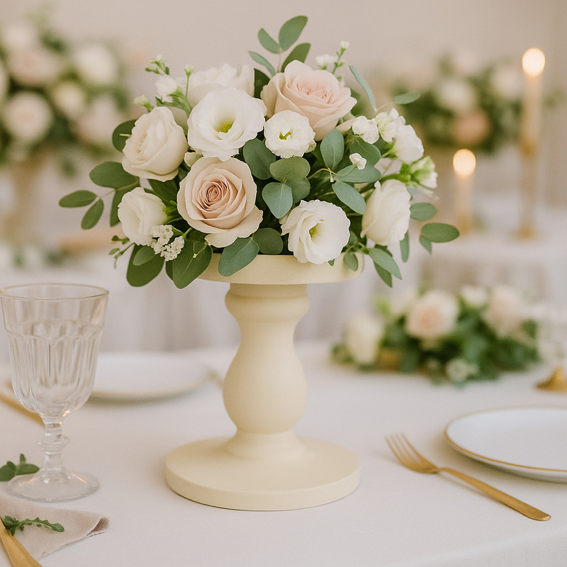 Rusztikus megjelenésű gyertyatartó, vintage-antik jellegű dizájnhoz.Előnyök: - Festhető- Kiváló minőségű alapanyagTalp átmérő: 13cm, tető átmérő: 10cm, mag: 12,5cm