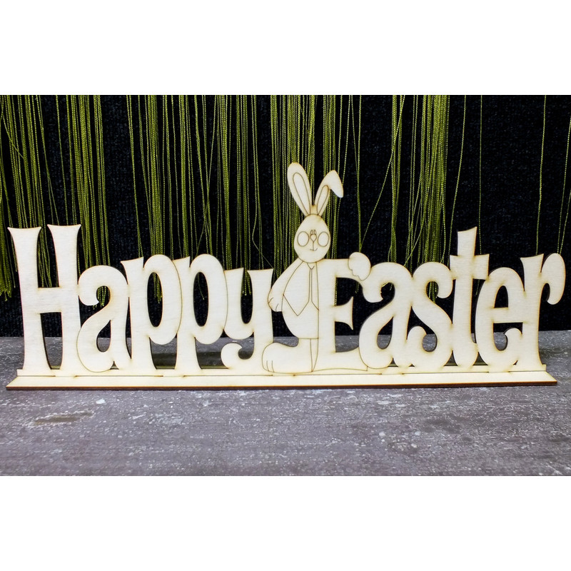 Natúr fa - "Happy Easter" talpas tábla 15x40cm – húsvéti és tavaszi dekorációhoz