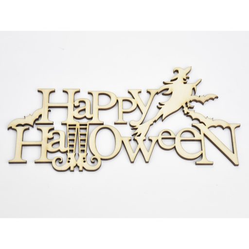 Natúr fa - "Happy Halloween" felirat 20cm – őszi dekorációhoz