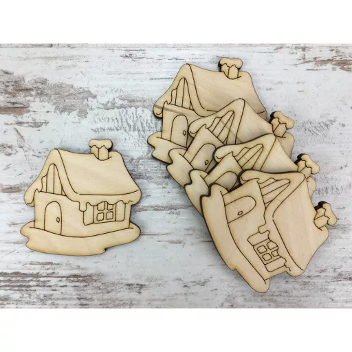 Natúr fa - Havas házikó 5cm 5db/csomag – karácsonyi dekorációhoz és koszorúhoz