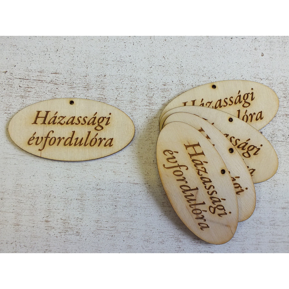 Natúr fa - "Házassági évfordulóra" gravírozott ovál tábla 4x8cm 5db/csomag – festéshez, dekorációhoz