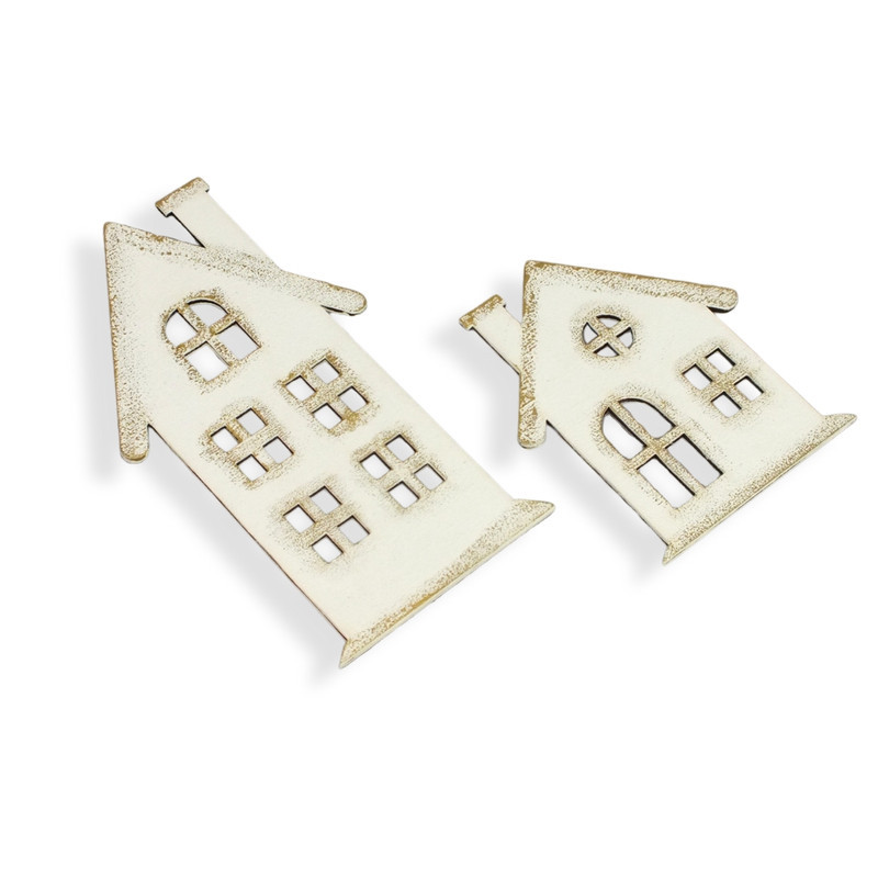 Natúr fa - Házikó szett 2db/cs fehér-arany – karácsonyi koszorúhoz és asztaldíszhez