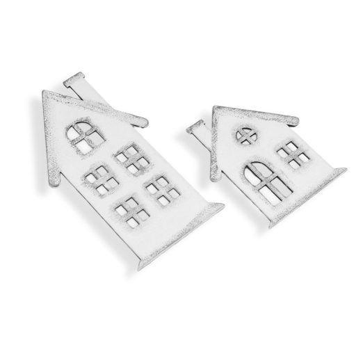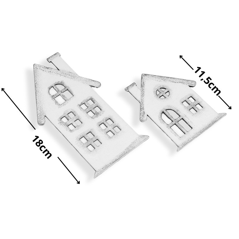 Natúr fa - Házikó szett 2db/cs fehér-ezüst – karácsonyi koszorúhoz és asztaldíszhez