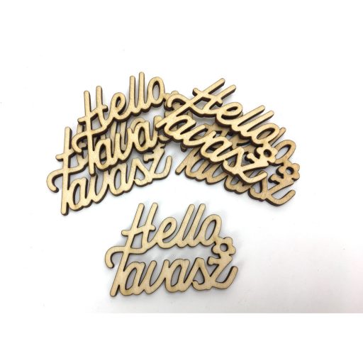 Natúr fa - " Helló Tavasz " felirat 4,3x6cm 5db/csomag – húsvéti és tavaszi dekorációhoz
