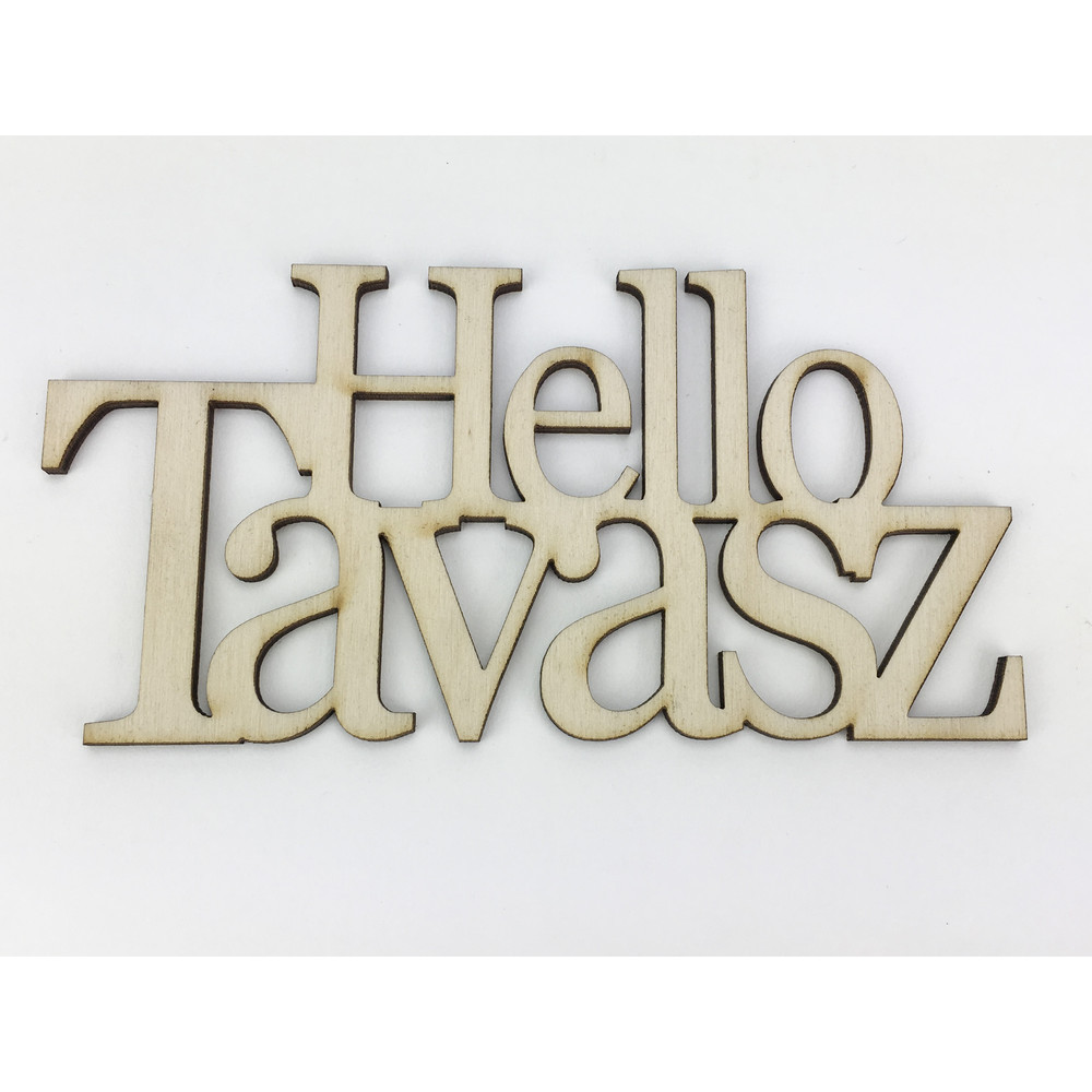 Natúr fa - "Hello Tavasz" felirat koszorúra 7x14cm – húsvéti dekorációhoz