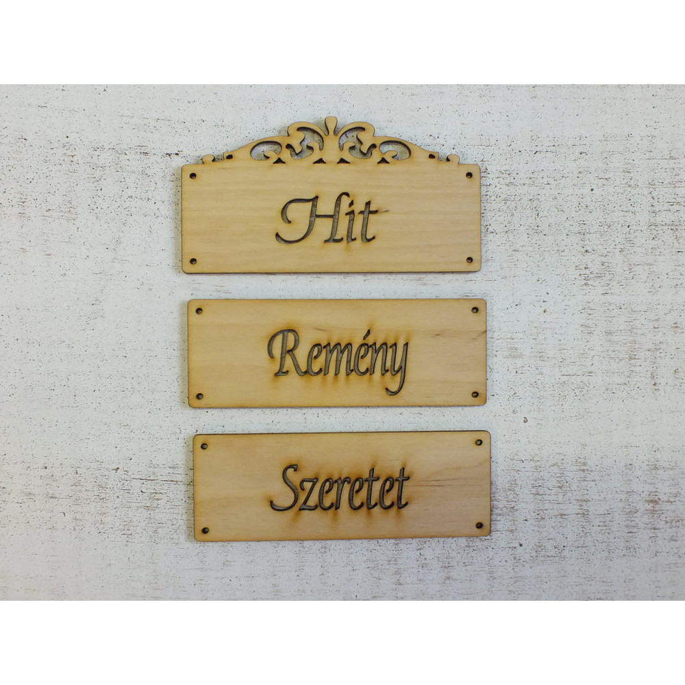 Natúr fa - "Hit Remény Szeretet" táblák 12cm – festéshez, dekorációhoz