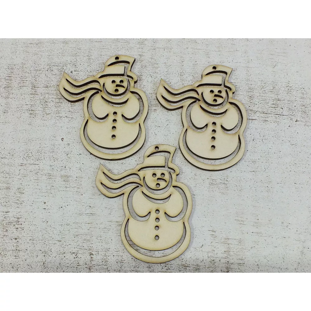 Natúr fa - Hóember sállal 8cm 3db/csomag – karácsonyi dekorációhoz és koszorúhoz