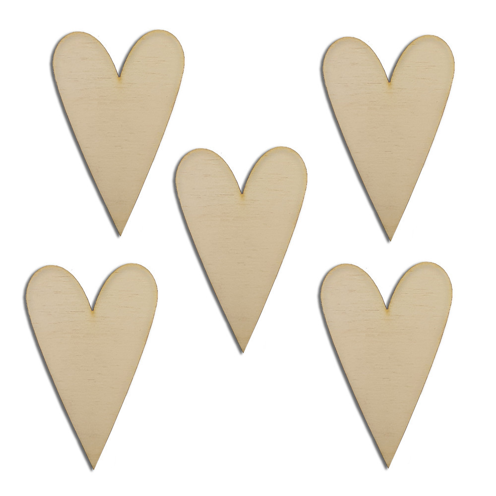 Natúr fa - Hosszúkás szív 5,5cm*8,5cm 5db/cs – esküvői dekorációhoz