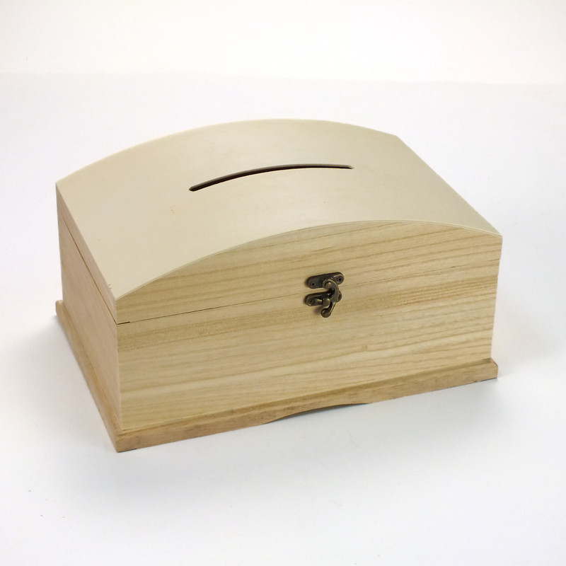 Íves tetejű, natúr fából készült lakodalmi perselyMéret: 20x30cm, mag: 15cm, vast.: 7mm. Felhasználható esküvői és kerti parti dekorációhoz, asztaldíszhez. Virágokkal, szalaggal és egyéb ünnepi kellékekkel kombinálható.