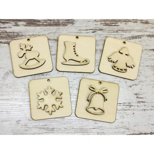 Natúr fa - Karácsonyi négyzet dísz szett 7cm 5db/csomag – karácsonyi dekorációhoz és koszorúhoz