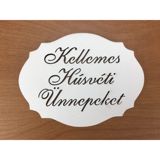 Natúr fa - "Kellemes Húsvéti Ünnepeket" kiesős tábla fehér 7,5x10cm – koszorúhoz és asztaldíszhez