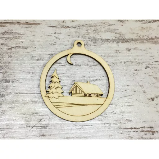 Natúr fa - Kerek dísz házikó 9cm – karácsonyi dekorációhoz