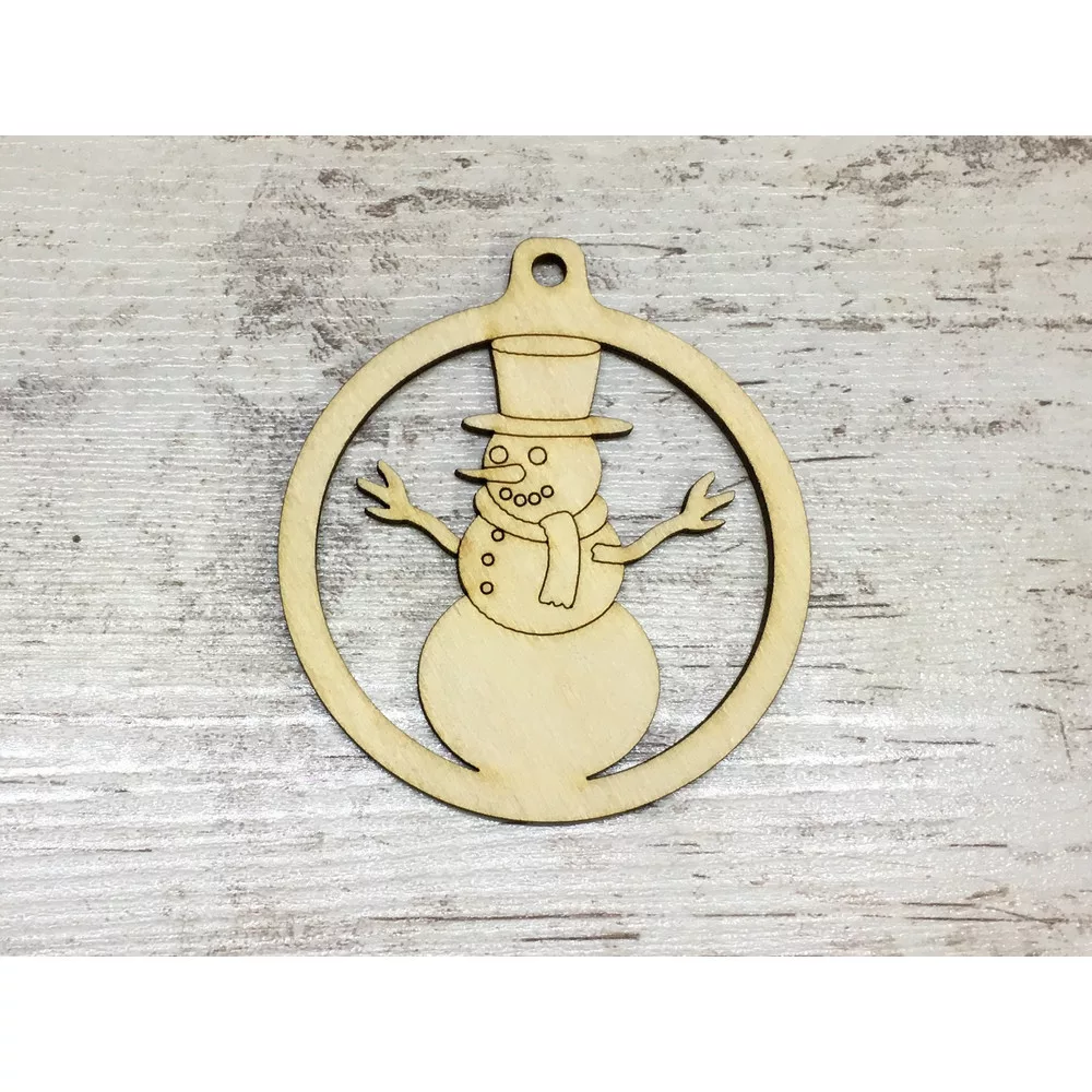 Natúr fa - Kerek dísz hóember 9cm – karácsonyi dekorációhoz