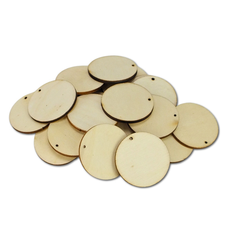 Natúr fa kerek kör lap lyukkal 4cm 20db/csomag – feliratként és tábladíszként