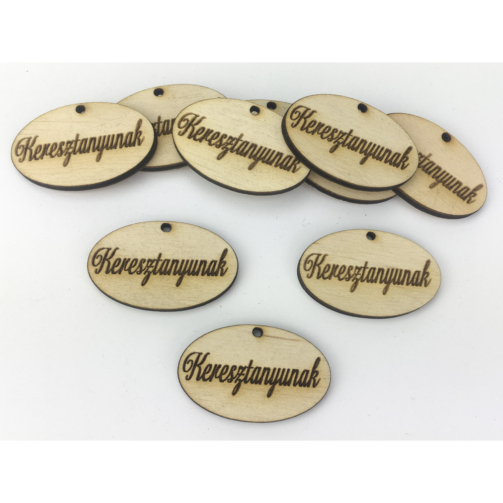 Natúr fa - "Keresztanyunak" ovál tábla 10db/csomag – feliratként és tábladíszként