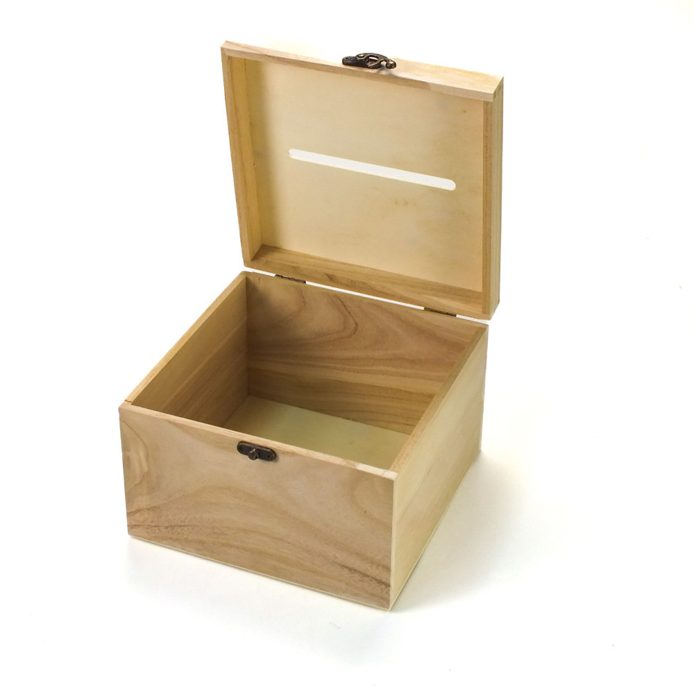 Kocka formájú, natúr fából készült esküvői/lakodalmi díszíthető persely. Méret: 20x20cm mag:14cm. Felhasználható esküvői és kerti parti dekorációhoz, asztaldíszhez. Virágokkal, szalaggal és egyéb ünnepi kellékekkel kombi