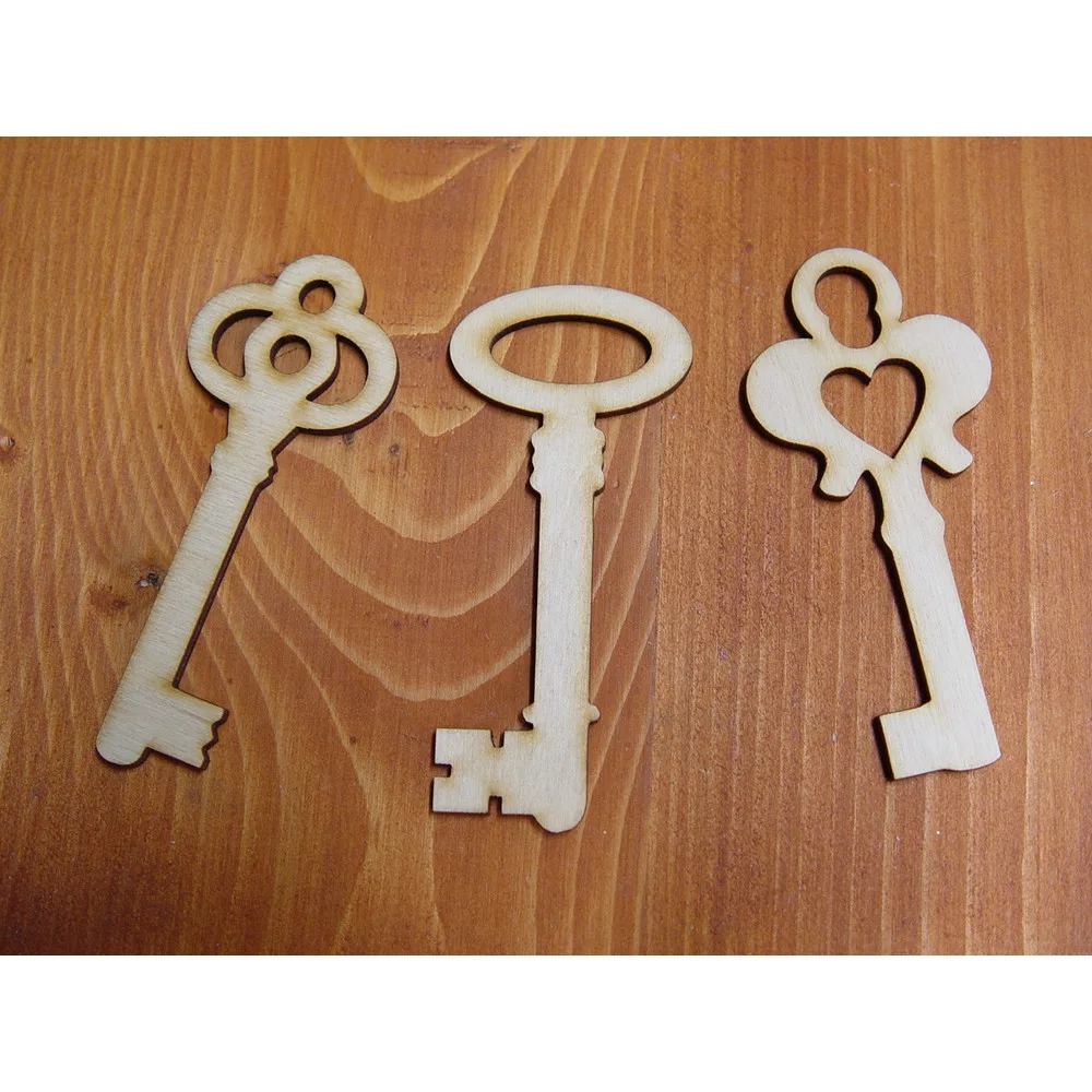Natúr fa - Kulcsok vegyes 3db/csomag – festéshez és dekorációhoz