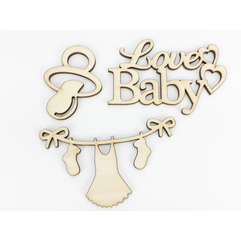 Natúr fa - "Love Baby" csomag 3db/csomag – kreatív dekorációhoz