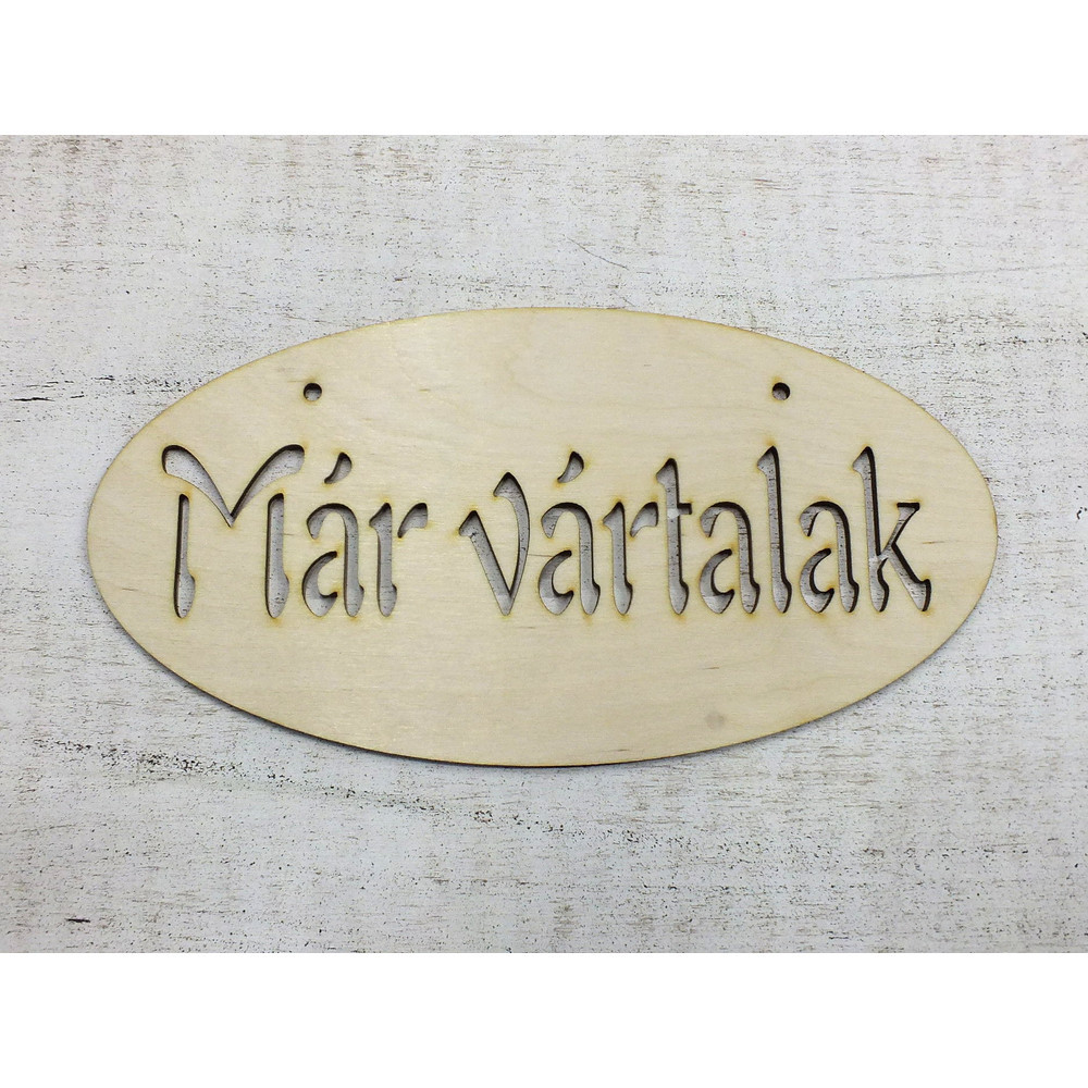 Natúr fa -"Már vártalak"áttört ovál tábla 12x24cm – festéshez, dekorációhoz