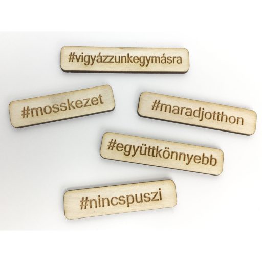 Natúr fa - "#maradjotthon" gravírozott tábla csomag 5db/cs – karácsonyi koszorúhoz és asztaldíszhez