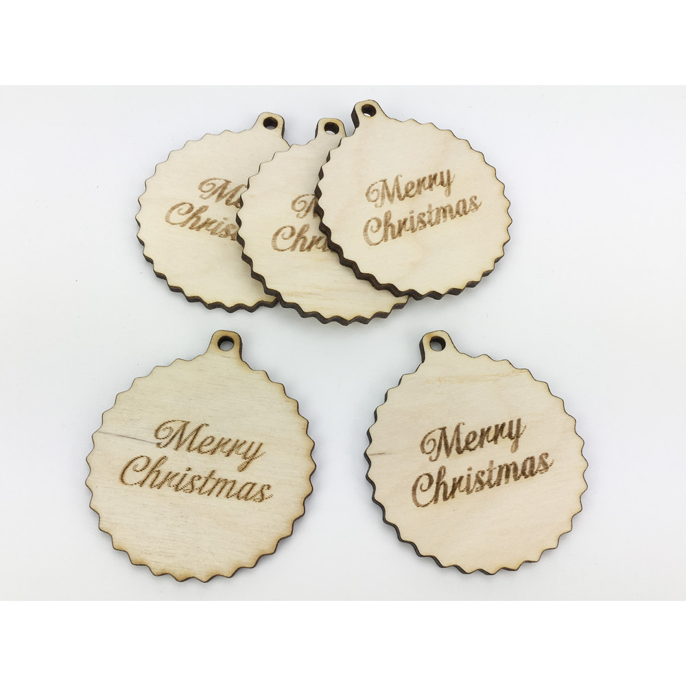 Natúr fa - "Merry Christmas" fodros gömb kicsi 5db/csomag – karácsonyi koszorúhoz és asztaldíszhez