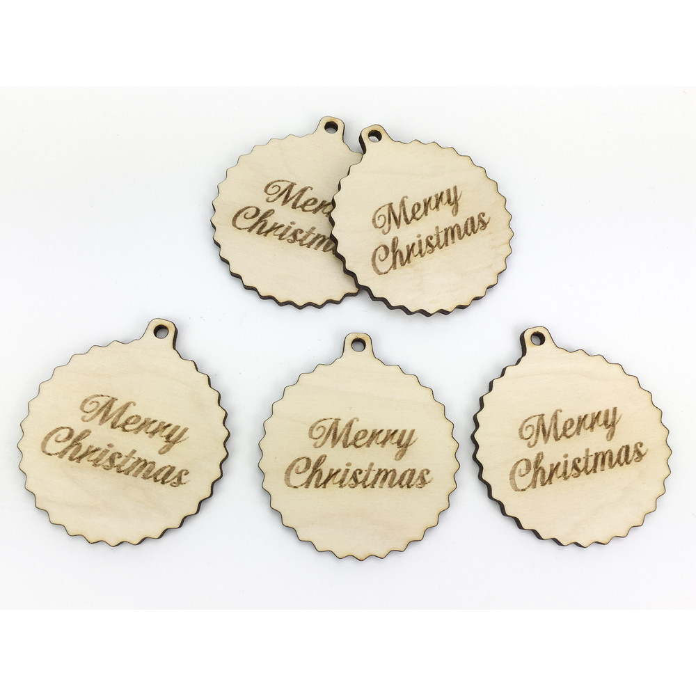 Natúr fa - "Merry Christmas" fodros gömb nagy 5db/csomag – karácsonyi dekorációhoz