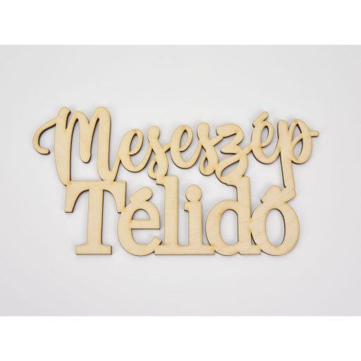 Natúr fa - Meseszép télidő felirat 20cm – karácsonyi koszorúhoz és asztaldíszhez