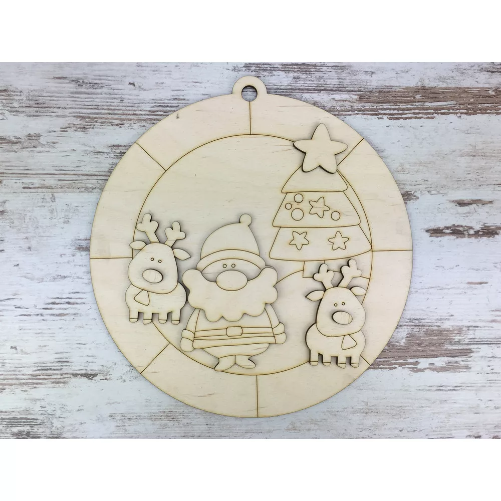 Natúr fa - Mikulás és barátai koszorú 25,5cm – karácsonyi dekorációhoz és koszorúhoz