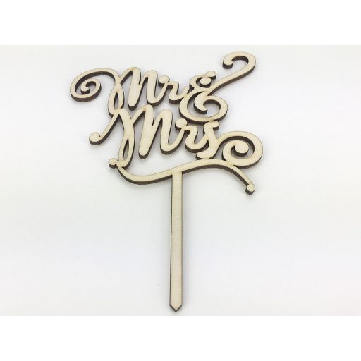 Natúr fa - "MR & MRS" íves tortadísz beszúrós felirat 12x18cm – esküvői dekorációhoz