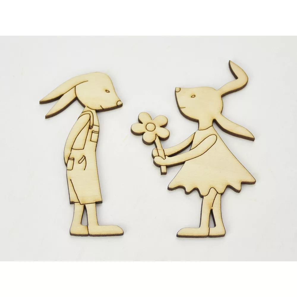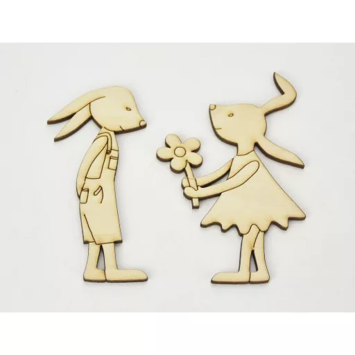 Natúr fa - Nyuszilány & Nyuszifiú 10cm 2db/csomag – húsvéti dekorációhoz