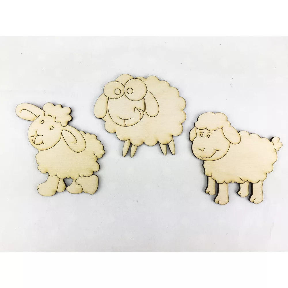 Natúr fa - Rajzos bárány szett 3db/csomag – húsvéti dekorációhoz