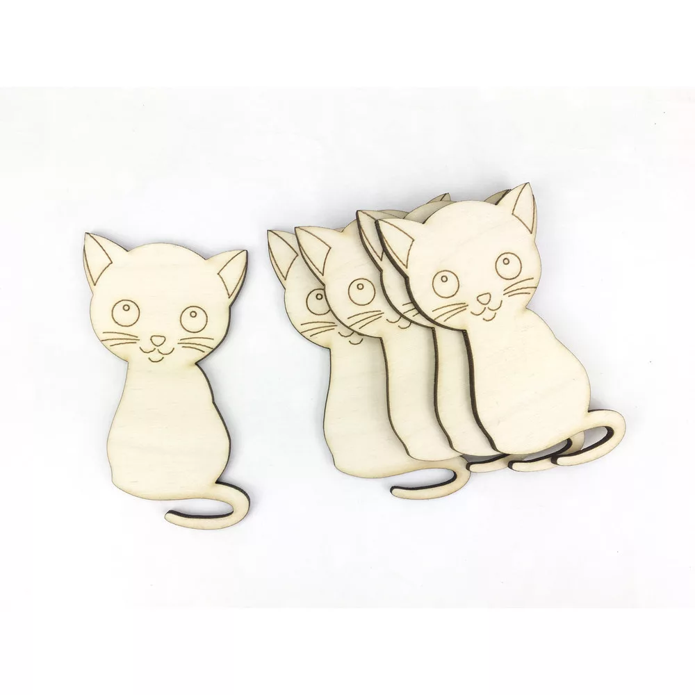 Natúr fa - Rajzos cica 8,5cm 5db/csomag – festéshez, dekorációhoz