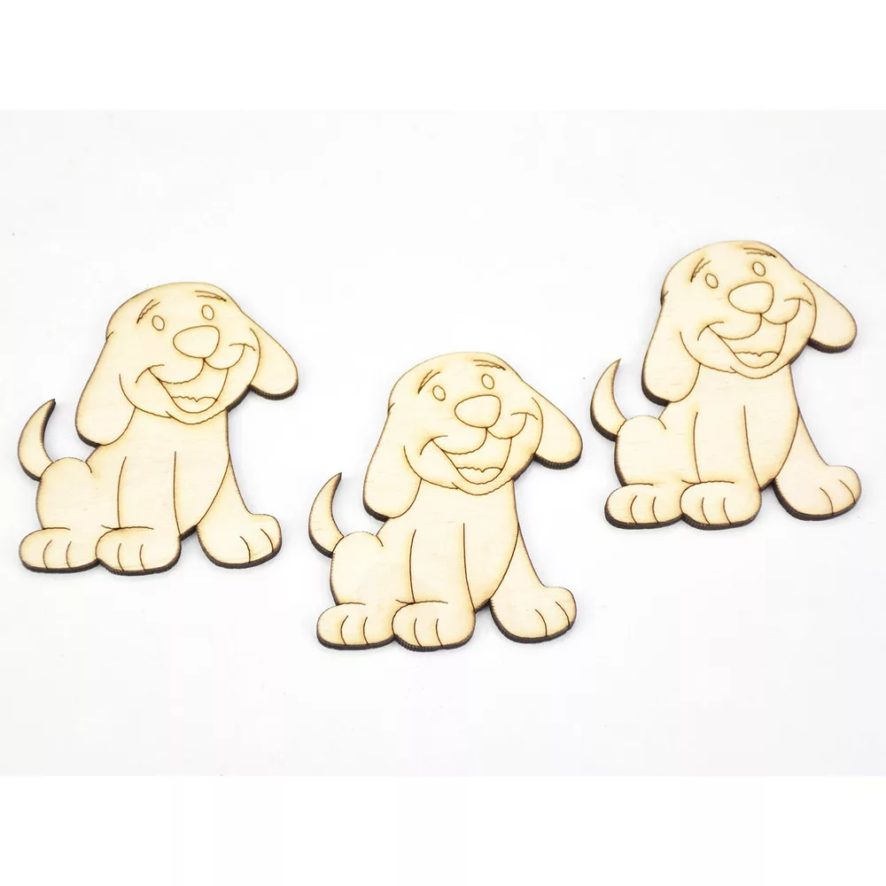 Natúr fa - Rajzos kutyus 6cm 3db/csomag – festéshez és dekorációhoz