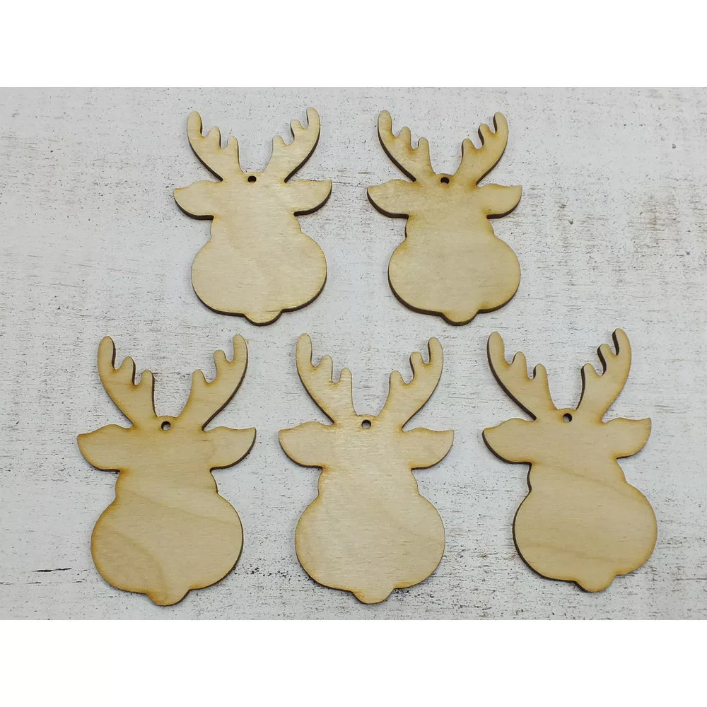 Natúr fa - Rénszarvas fej 6,5x10cm 5db/csomag – karácsonyi dekorációhoz és koszorúhoz