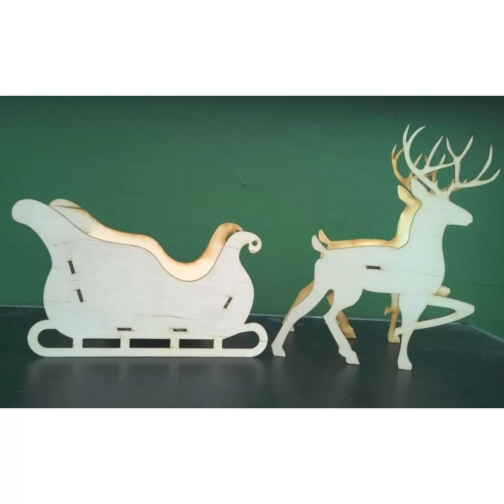 Natúr fa - Rénszarvasok szánnal 50cm – koszorúhoz, asztaldíszhez