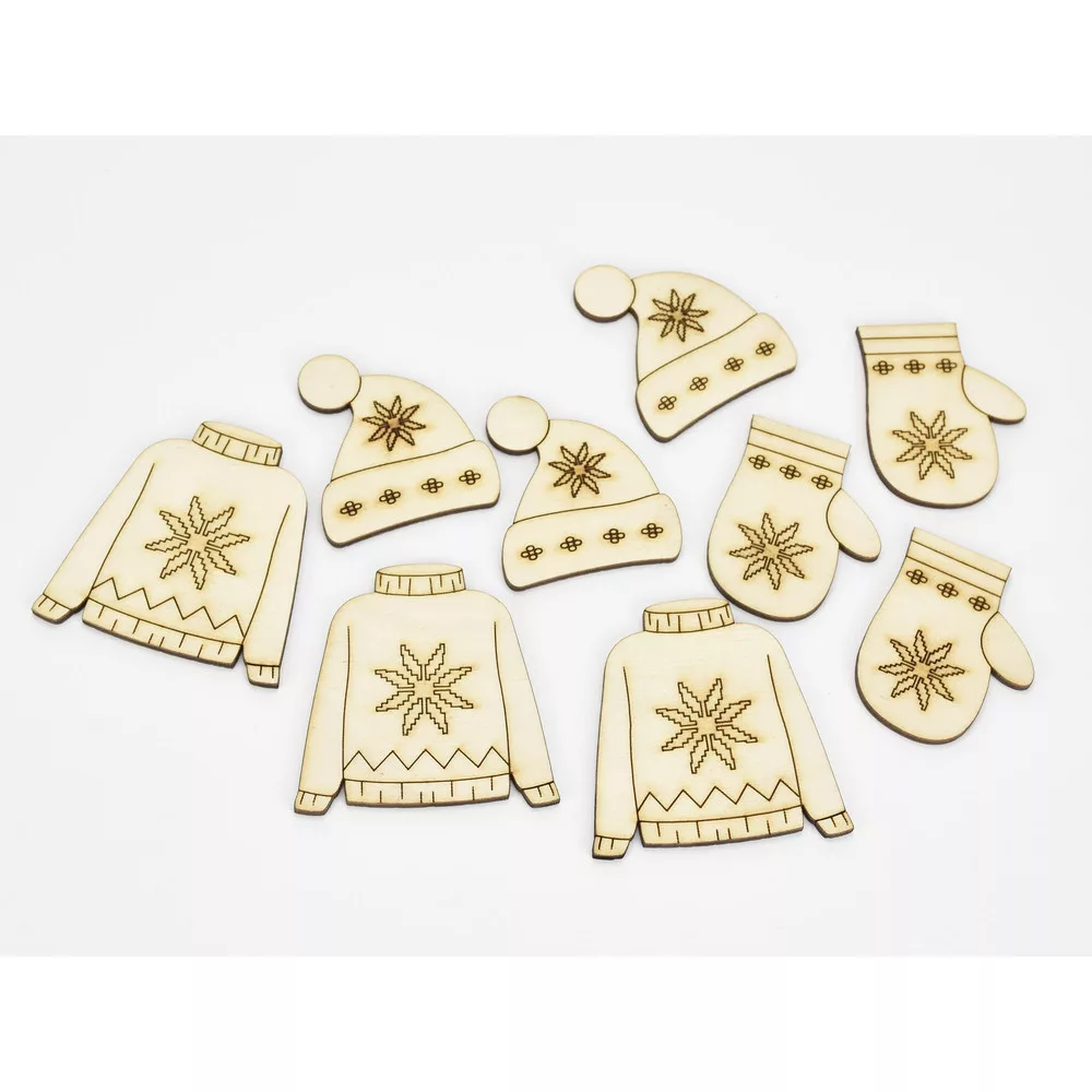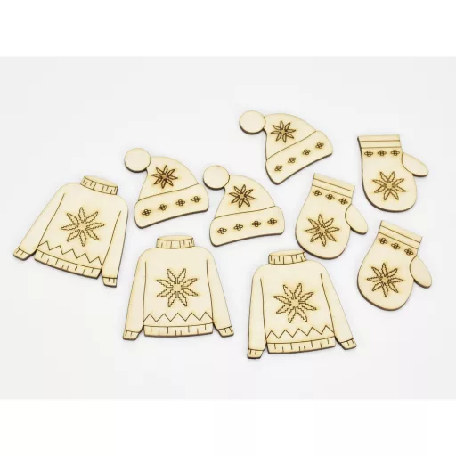 Sapka: 4,3x5cmKesztyű: 4x5cmPulcsi: 6x6cm. Beépíthető karácsonyi koszorúba, ajtódíszbe, asztaldíszbe és ajándékcsomagolásba. Festheted, decoupage technikával díszítheted, ragaszthatod, szalaggal és masnival kombinálhatod. Kinek ajánljuk? Ideális koszorúkészítőknek, dekoráció kedvelőknek és ünnepi hangulat megteremtőknek.