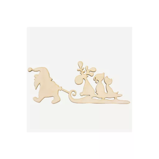 Dekoráció alap: szánhúzó Mikulás, rénszarvas, kutyus és cica minták.Méret: max. mag: 11cm, max. szél: 25cm. Felhasználható karácsonyi asztaldíszhez, koszorúhoz és ünnepi dekorációhoz. Festéssel, ragasztással egyedi karác