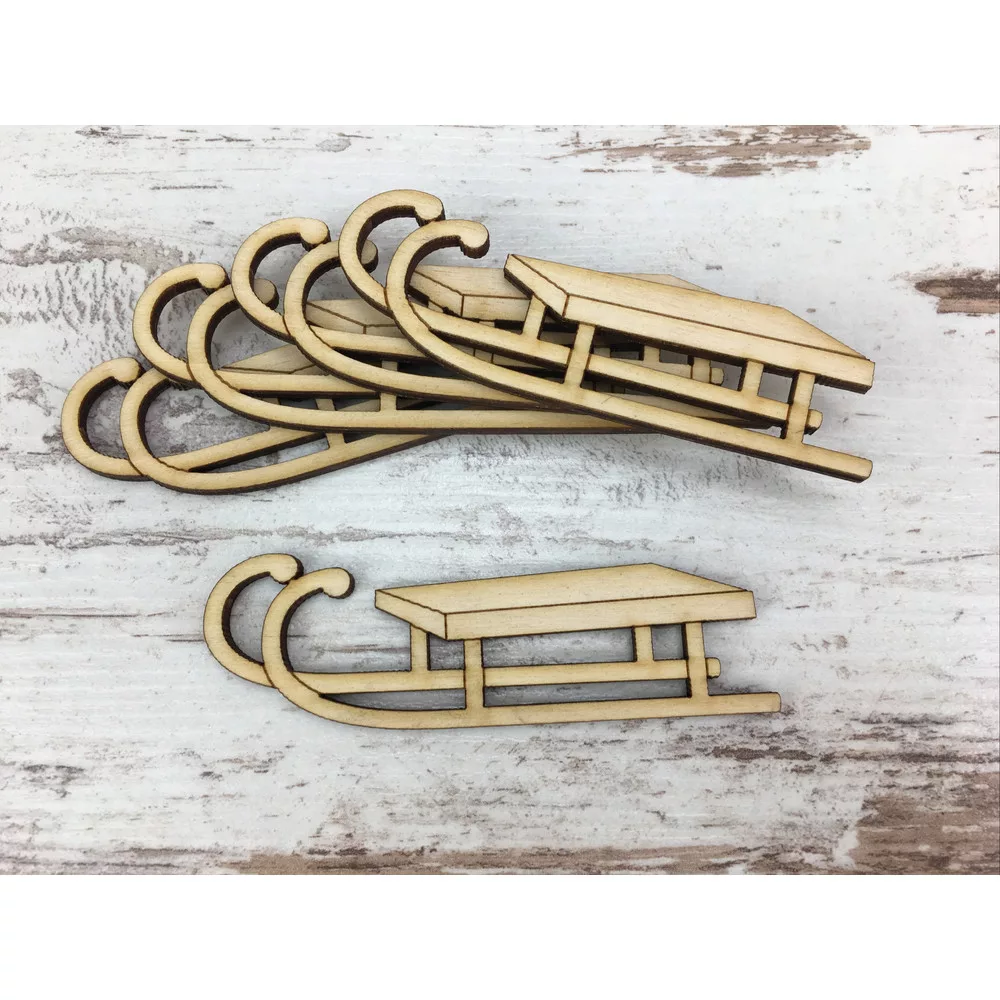 Natúr fa - Szánkó 8cm 5db/csomag – karácsonyi dekorációhoz
