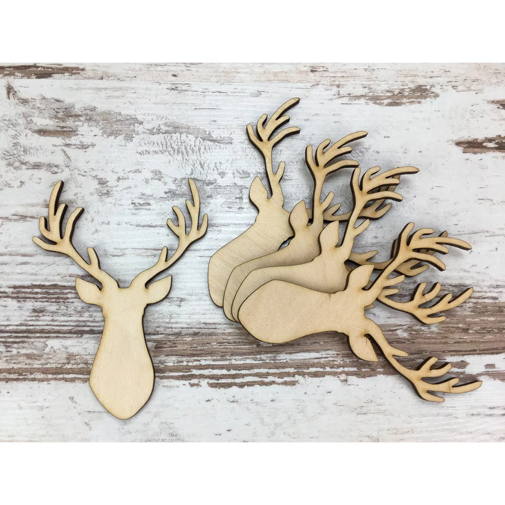 Natúr fa - Szarvas fej vadász 10cm 5db/csomag – karácsonyi dekorációhoz és koszorúhoz