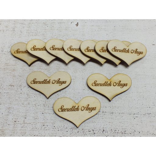 Natúr fa - "Szeretlek Anya" gravírozott szív 10db/csomag – anyák napi dekorációhoz