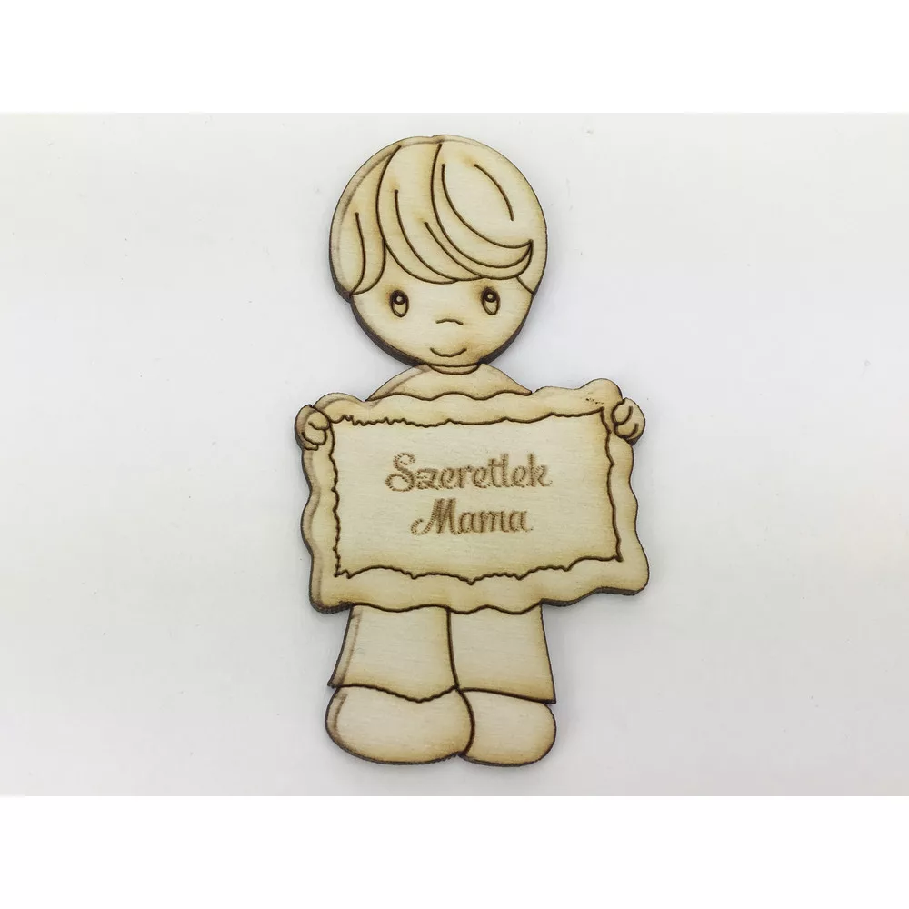 Natúr fa - "Szeretlek Mama" kisfiú 5x9,5cm – anyák napi ajándékhoz és dekorációhoz