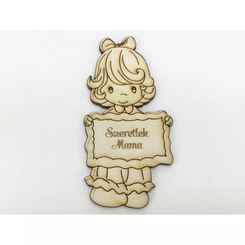 Natúr fa - "Szeretlek Mama" kislány 5x10cm – anyák napi ajándékhoz és dekorációhoz