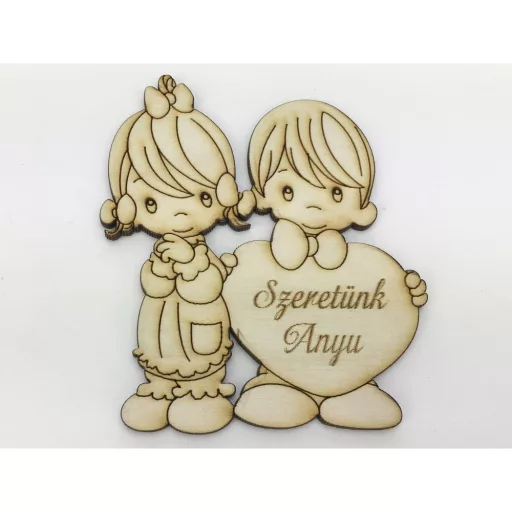 Natúr fa - "Szeretünk Anyu" testvérek 8,5x10cm – anyák napi ajándékhoz és dekorációhoz