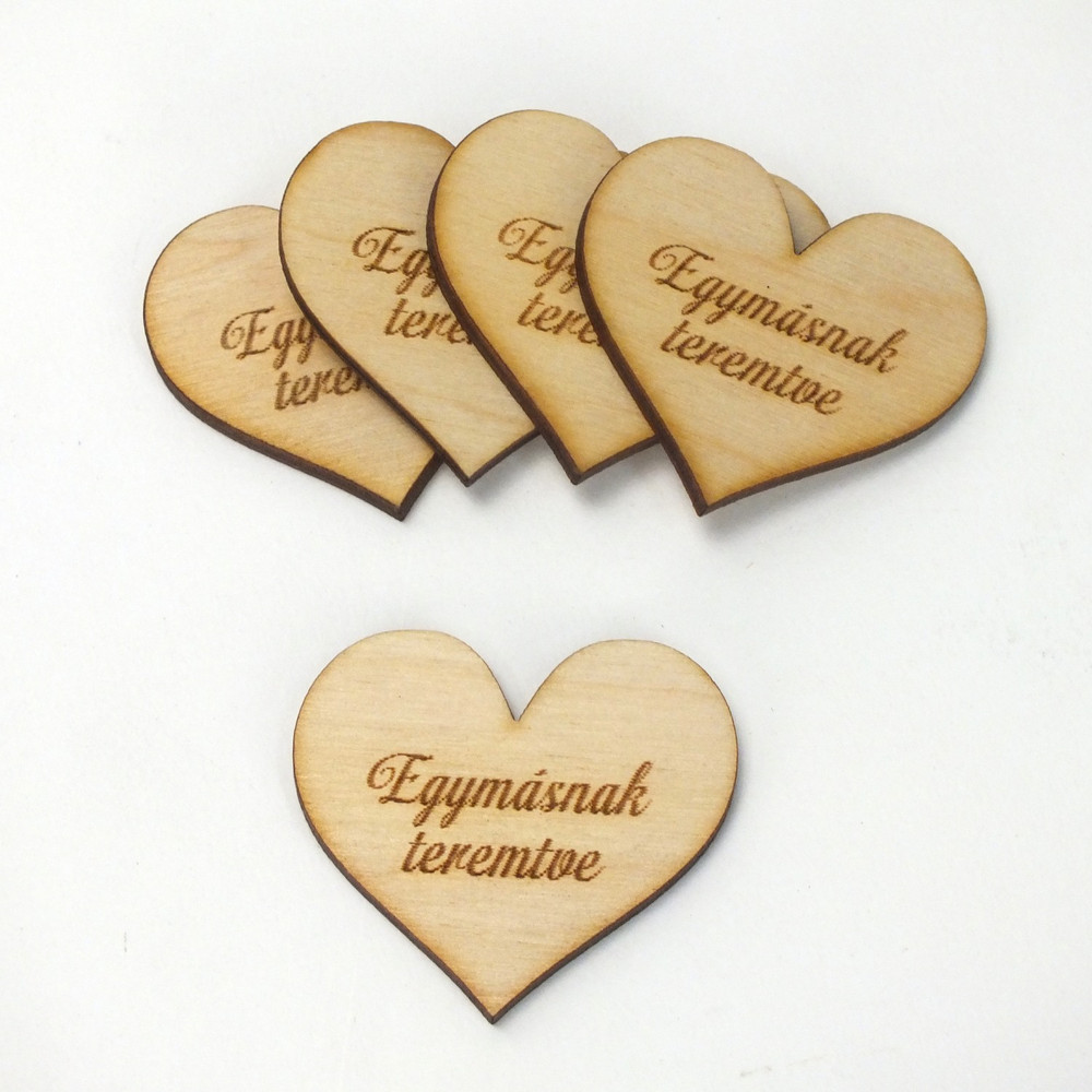 Natúr fa - Szív "Egymásnak teremtve" 4cm 5db/cs – valentin napi ajándékhoz és romantikus dekorációhoz