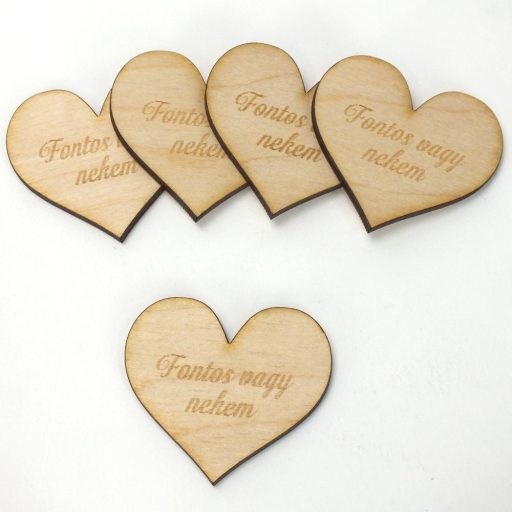 Natúr fa - Szív "Fontos vagy nekem" 4cm 5db/cs – valentin napi ajándékhoz és romantikus dekorációhoz