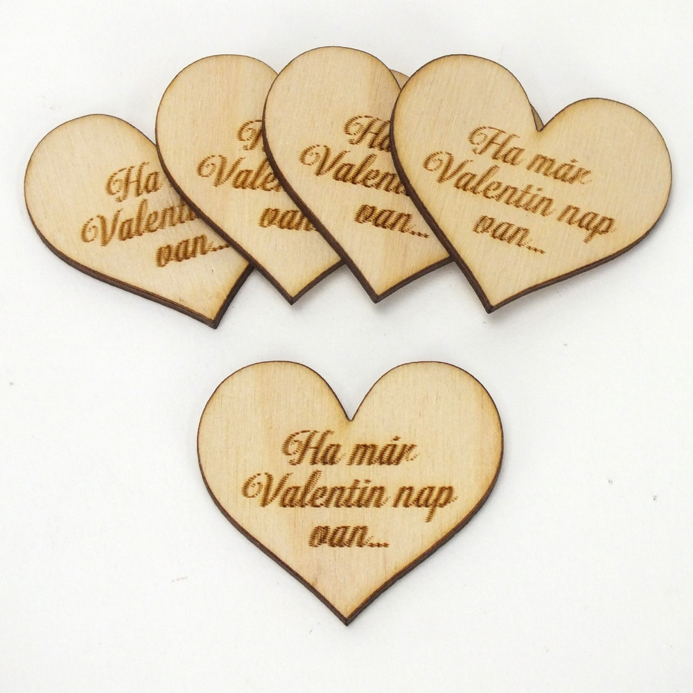 Natúr fa - Szív "Ha már Valentin nap van..." 5db/csomag – valentin napi ajándékhoz és romantikus dekorációhoz