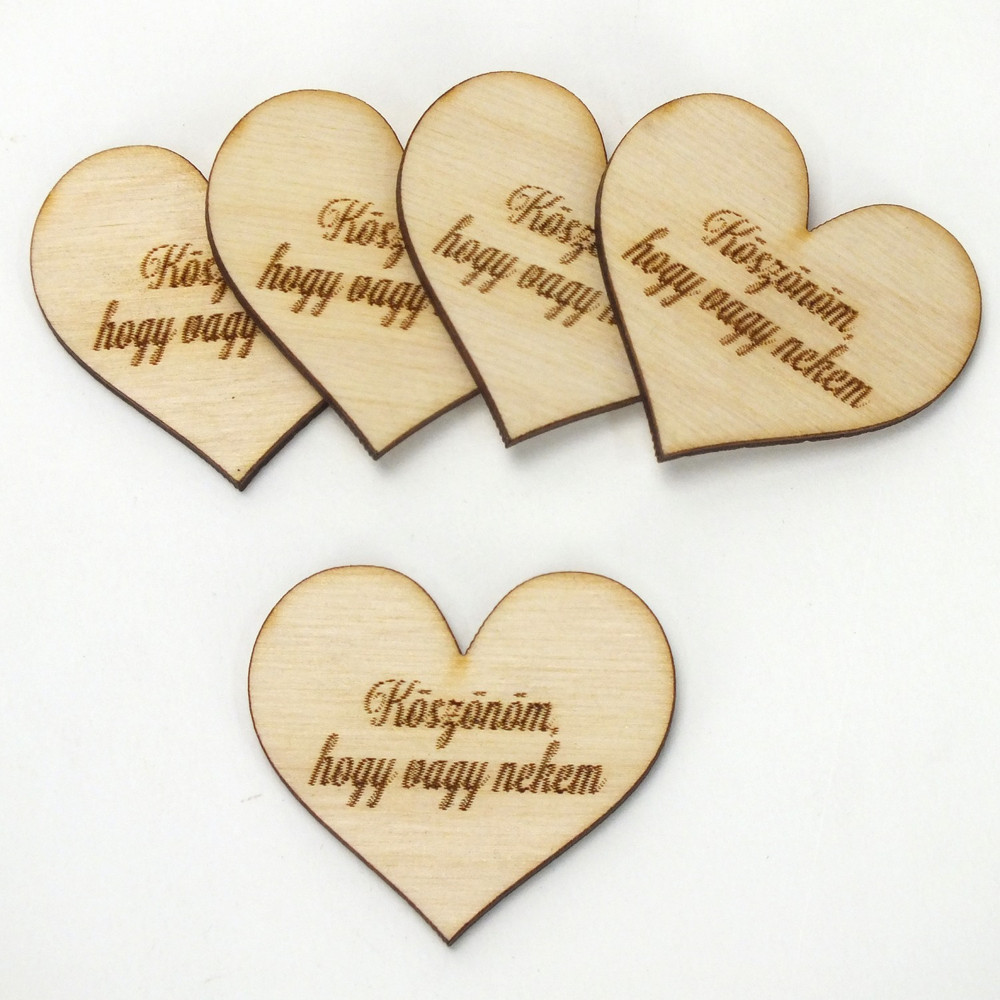 Natúr fa - Szív "Köszönöm,hogy vagy nekem" 4cm 5db/cs – valentin napi ajándékhoz és romantikus dekorációhoz