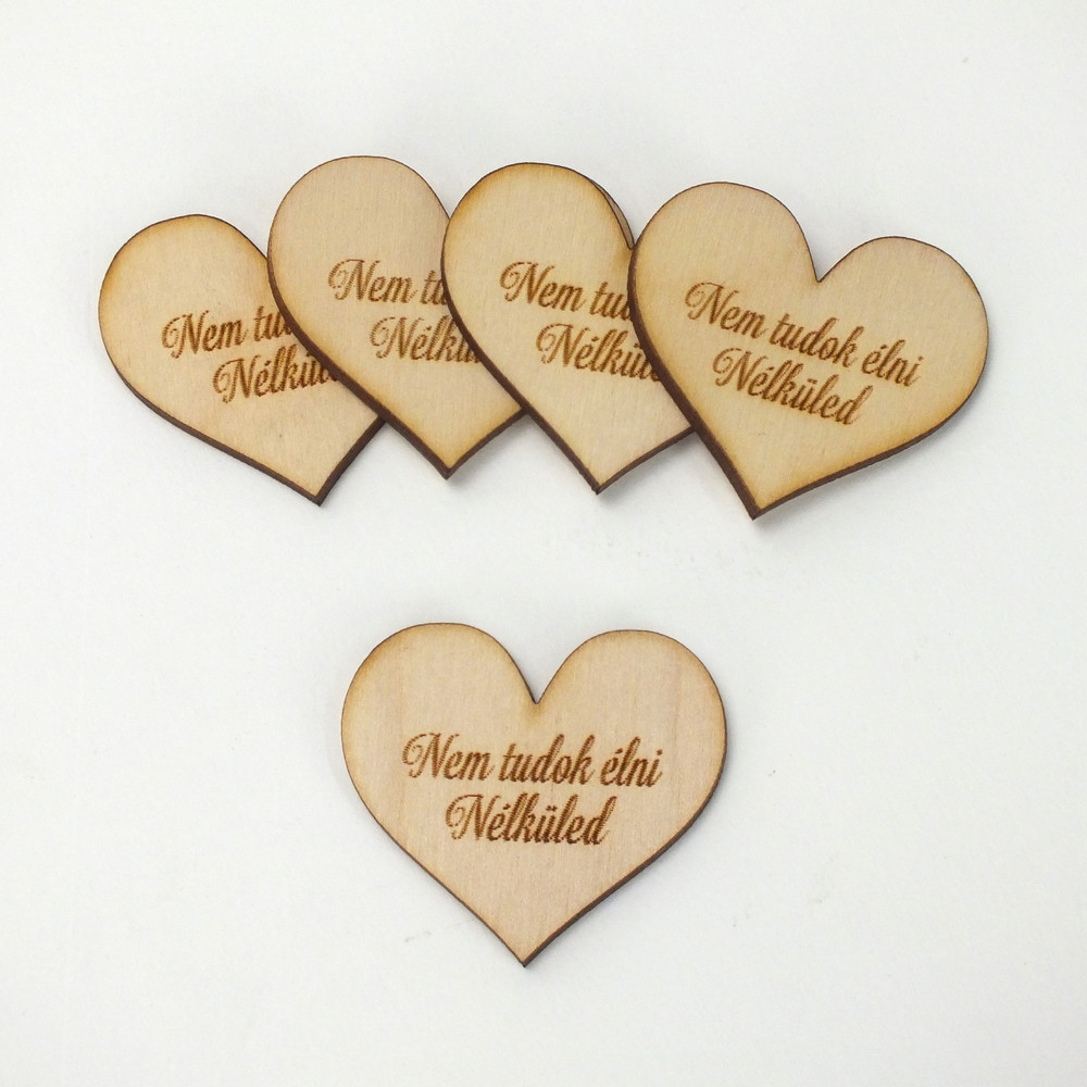 Natúr fa - Szív "Nem tudok élni Nélküled" 4cm 5db/cs – valentin napi ajándékhoz és romantikus dekorációhoz